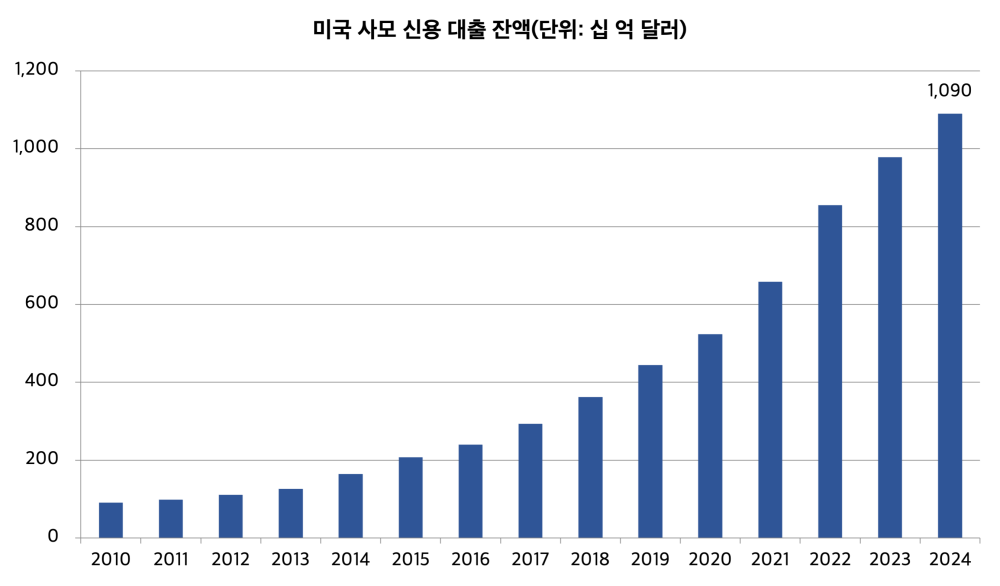 사모 펀드들은 금융 규제와 저금리 환경 덕분에 은행이나 보험사로부터 비교적 낮은 금리에 자금을 조달해서 중견 기업에 대출함으로써 사모 신용 시장의 성장을 견인했다. 국제결제은행(BIS)에 따르면 사모 신용 펀드의 운용 자산(AUM)은 2000년대 초 약 20억 달러에서 오늘날 2조 5000억 달러 이상으로 급증했다. 여전히 중견 기업 대출에 중점을 두고 있지만, 사모 신용은 최근 5년 동안 그 영역을 크게 확장했다. 미국과 유럽의 사모 신용회사는 과거에는 대형은행이나 회사채를 통해 자금을 조달했을 훨씬 더 큰 기업에게 대출을 제공한다. 대기업들도 공모 시장과 관련된 공시 및 비용을 피하기 위해 맞춤형 사모 신용 계약을 이용할 수 있다.