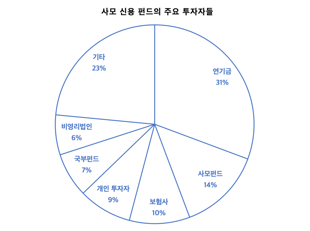 사모 신용 펀드의 주요 투자자들이 누구인지만 봐도 사모 신용 시장이 커진 배경이 짐작된다. (데이터: IMF) |