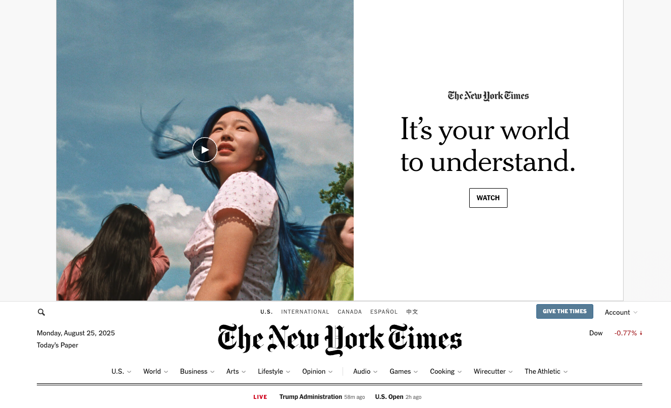 이제는 무언가와 싸우는 거대한 아젠다가 아니라 "당신이 이해할 당신의 세계이다(It's your world to understand)"라면서 기존에 뉴욕타임스의 독자층이 아니었던 사람들에게는 가르치려는 태도와 계몽의 목적으로 느껴졌던 색채를 많이 배제한 것입니다. 당신의 세계를 더 잘 이해할 수 있게 돕겠다는 것이 메시지이죠.