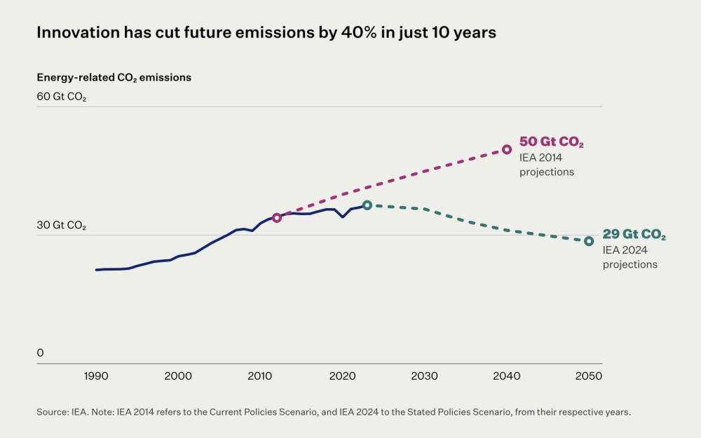 기술 발전이 어떤 성과를 내고 있는지를 보여주는 대표적인 지표이고, 이는 빌 게이츠가 메모에도 강조한 내용입니다. 브레이크스루에너지는 이 이후에 새로운 에너지원과 저장 장치를 비롯해 추가적인 돌파구를 만들 수 있는 기술들에 투자를 해온 것입니다.